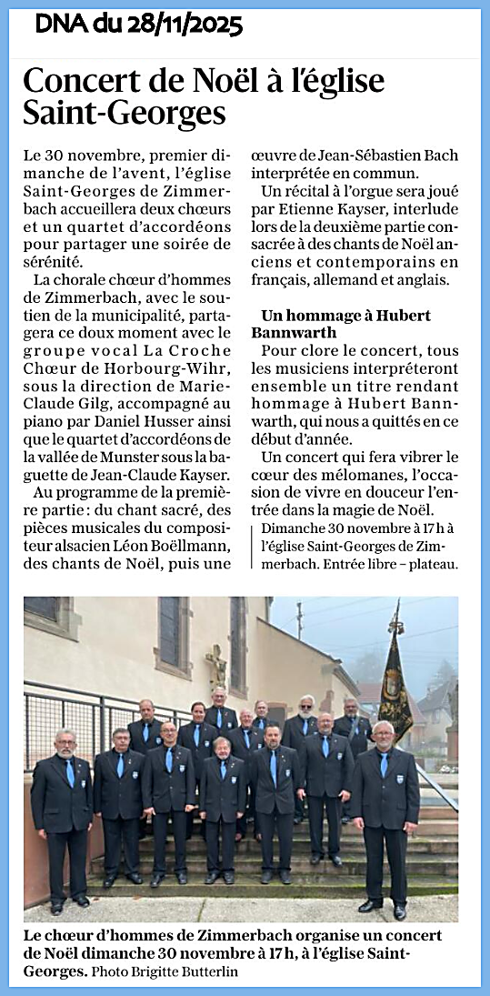 ![]() Annonce du concert de Noël à Zimmerbach le 30 novembre 2025 |