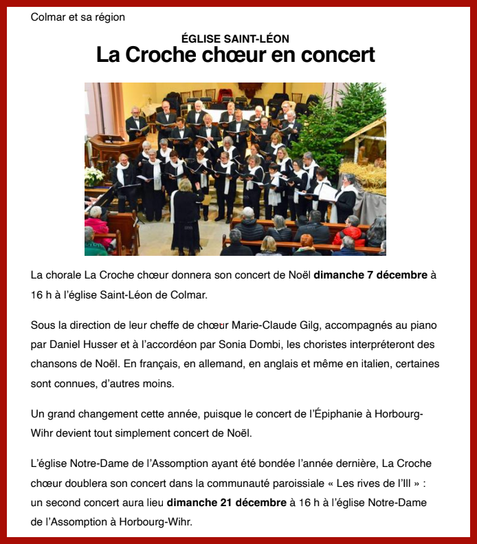 | Noël 2023 | ![]() Annonce pour le concert de Horbourg-Wihr |